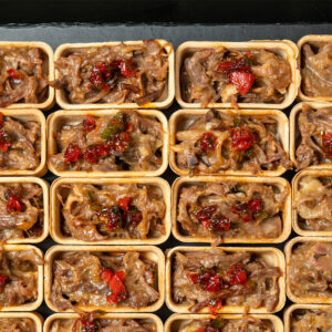 Servidos sobre una tartaleta ligera y cuidadosamente presentados, son perfectos como aperitivo o parte de un evento.